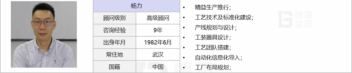 擅長業務:精益推行、工藝優化、產線設計、工裝器具設計、自動化改造、工廠布局。