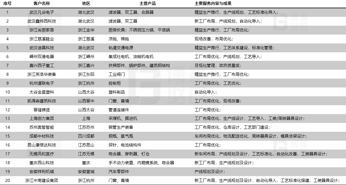 熟悉行業:射頻通訊、汽配、電子電器、裝備制造、電力設備、機械加工、家具家電、醫療器械。
