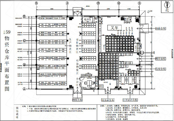 第三步物資倉庫布局重新調整,對新布局進行討論,并最后定案形成簽核檔。將新布局下需要的物資數量、搬運人力、購買材料等做了詳細的預算。如:159庫平面布置圖。