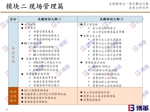歡迎您訪問博革咨詢官網!博革咨詢是中國首家整合精益生產/六西格瑪/流程再造的咨詢公司,專注于提供 精益生產、6S現場管理、TPM設備管理、精益工廠布局、專業目視化、精益供應鏈、精益研發六西格瑪管理智能制造等綜合性問題解決方案并負責落地實施。